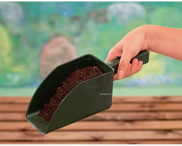 Pala Garden Scoop moldeada en nylon 100% reciclado de excepcional fuerza, esta pala con mango de madera es ideal para la recogida de compost, abono y arena.