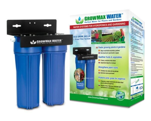 El filtro de agua Eco Grow es ideal para jardines pequeños y cultivos de interior. Este tipo de filtros de dos etapas, sirven para eliminar olores, eliminan hasta el 99% de cloro y reduce los sedimentos superiores a 5 micras al instante.